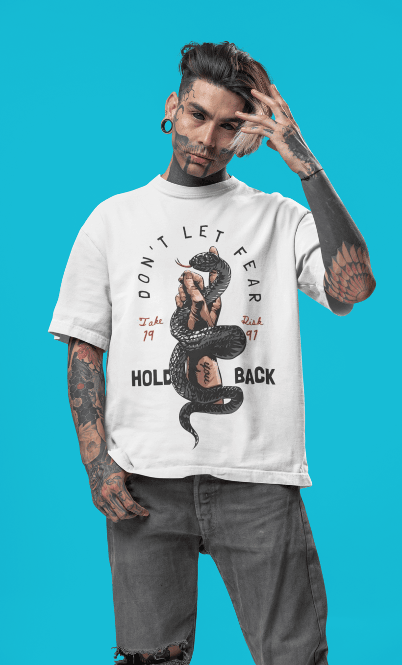 Break limits, not style. “Don’t Hold Back” is more than a graphic — it’s a mindset. This oversized white tee features a powerful hand-and-snake illustration symbolizing danger, control, and fearless energy. For those who lead, not follow.